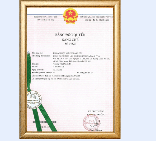 BẰNG SÁNG CHẾ ĐỘC QUYỀN HỐ GA THOÁT NƯỚC KHÔNG LẮNG CẶN