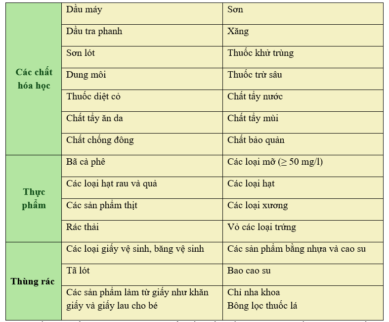 - Hạn chế tối đa các hóa chất mạnh, các chất không phân hủy vào hệ thống như: