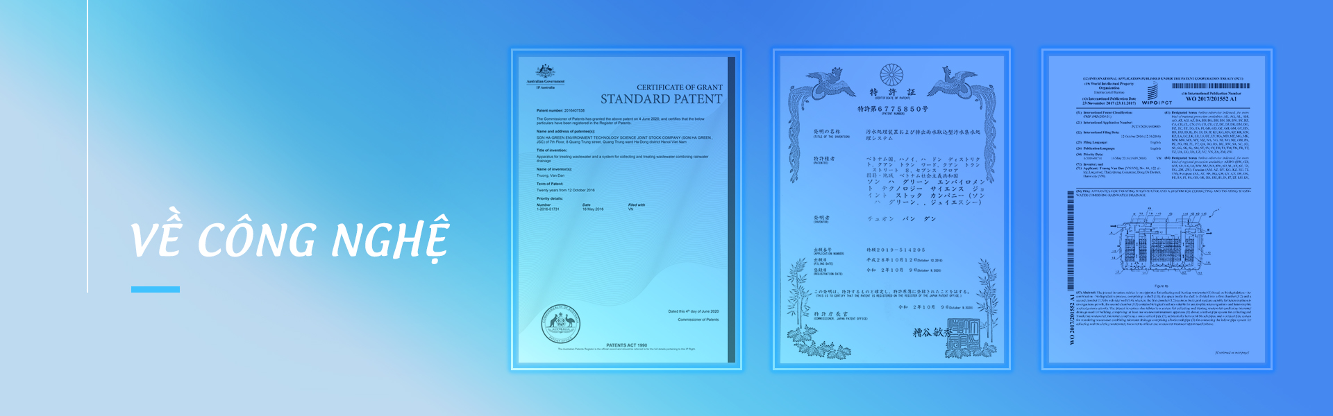 Bằng sáng chế độc quyền tại tổ chức trí tuệ thế giới WIPO, tại Hoa Kỳ, Úc, Nhật cho "Thiết bị xử lý nước thải và hệ thống thu gom và xử lý nước thải kết hợp thoát nước mưa"