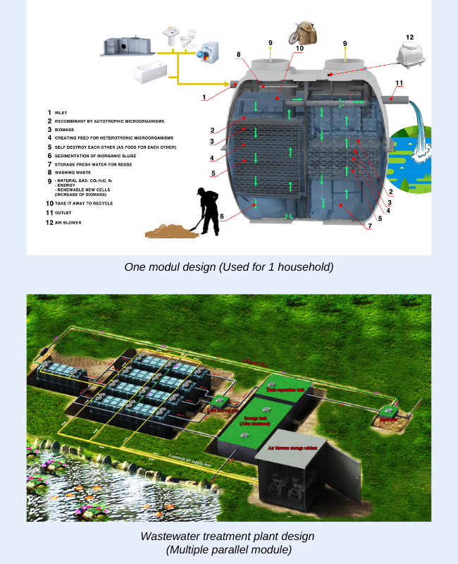 Owing to the application of the very special feature to the wastewater treatment system, the interior water collection system and drainage system can collect wastewater from all sources including: rainwater, kitchens, toilets, laundries, bathrooms, shower water …