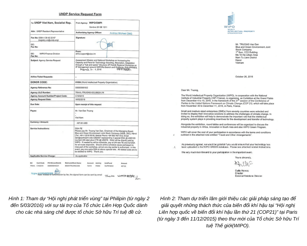 - Năm 2016 được Liên hợp quốc UNDP lựa chọn và tài trợ 100% kinh phí để tham gia hội nghị phát triển vùng 3/2016 tại MANILA PHILIPIN để đào tạo phương thức chuyển giao công nghệ. Hoàn thiện hồ sơ bộ sản phẩm KHCN để đăng ký bản quyền trong nước và Quốc tế.