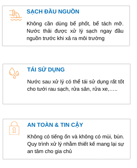 - Ít phát sinh mùi và bùn thải hữu cơ. Không gây ô nhiễm tại nơi xử lý và trên đường truyền, khu xả thải (phòng bếp, phòng vệ sinh)